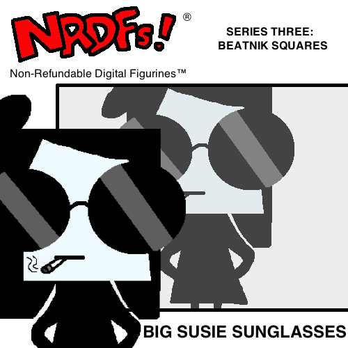 They call her Big Susie Sunglasses, ‘cause she’s got a big head, and even bigger sunglasses. Pretty hip, you dig? And if you wanna prove that you know what’s up, you’ll buy the only digital figurine in existence of Big Susie Sunglasses, because you’re a happening cat.